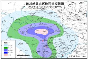 汶川地震災區降雨量預報圖(20日20時-21日08時)