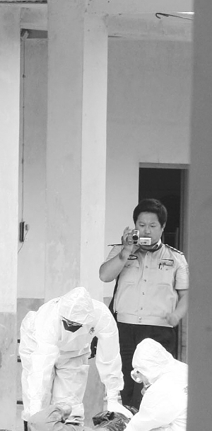 24日,記者見到成都市公安局的法醫在處理一具無名遺體。他們先打開裹尸袋,給遺體拍了一張全身照,然后剪開外衣從頭部、上肢到下肢依次檢查,又對其頭部和右手臂的傷疤分別拍照。