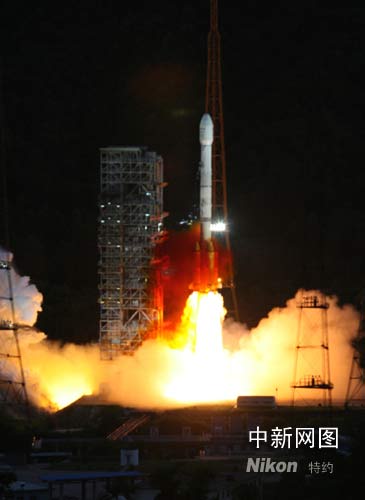 北京時間6月9日晚8時15分,中國在西昌衛星發射中心用“長征三號乙”運載火箭,成功將“中星九號”廣播電視直播衛星送入太空。這是汶川大地震發生后,西昌衛星發射中心首次航天發射,也是中國“長征”系列運載火箭第107次發射。 記者 齊彬 攝