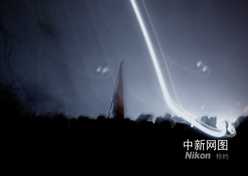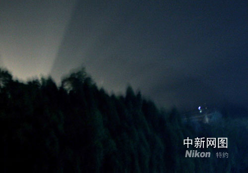 失事直升機部分遇難者遺體,由四川省軍區的阿壩軍分區和雅安軍分區預備役官兵日夜搶運。于十三日子夜零點時分先后運抵四川省映秀鎮,圖為在映秀鎮外高山上出現運送隊伍的微弱燈光(右下角)。作者:賈國榮