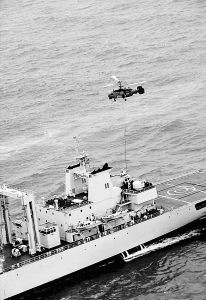 時近中午,反潛空中突擊群打擊“潛艇”戰斗如期打響。海域內波濤滾滾,反潛直升機穿行在藍天碧海之間。