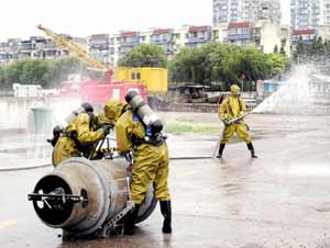 徐匯區環保局副局長、演練指揮長金顯揚介紹,化學污染事故蔓延速度快,傷害巨大。今年以來徐匯區投入了大量資金,配備齊全了監測和處理的特殊裝備,這些高科技裝備都在這次演習中發揮了有效作用。