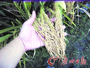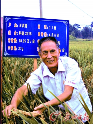 該鄉(xiāng)農(nóng)技站長鄒都樂介紹說,王洪青種的這種水稻是袁隆平院士新研制的品種“科超3218”,前幾天經(jīng)專家田間現(xiàn)場測產(chǎn),每畝有效穗超過18萬支,平均每穗實粒207粒,按每千粒27克計算,預計今年畝產(chǎn)達到1008公斤。“如不出意外,今年牛形嘴村這塊102畝的試驗田,平均畝產(chǎn)將鐵定突破900公斤。”鄒都樂說,村里去年就開始種上袁院士的這種超級稻,去年8月份,眼看長勢喜人的水稻即將割鐮,可惜突然來了一場“圣帕臺風”,一夜之間將水稻刮倒許多。最后收割時一測算,畝產(chǎn)只有870公斤。“如果沒有那場臺風,畝產(chǎn)900公斤的目標去年早就提前實現(xiàn)了!”