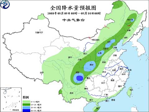 9日08時至10日08時,西藏東部、西北地區中東部、內蒙古中東部、東北大部、華北、黃淮西部、湖北西北部、福建東南部、廣東南部、廣西南部、海南以及四川、重慶大部、貴州西部、云南、臺灣等地有小到中雨或雷陣雨,其中,黑龍江中部、河北中北部、山西南部、陜西南部、四川盆地東北部和南部等地的部分地區有大雨,局部地區有暴雨并將伴有短時雷雨大風等強對流天氣。內蒙古中東部、東北地區有4~6級偏北或偏南風。