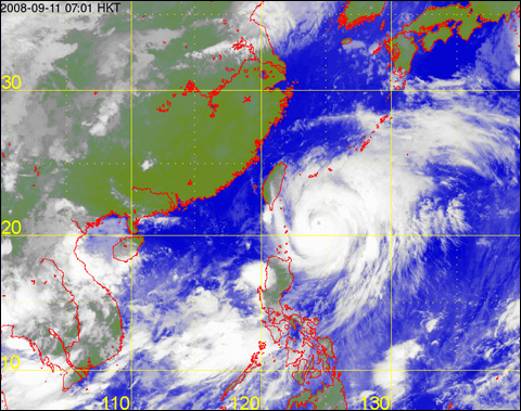 圖為今天早上7點的森拉克衛星云圖。可以看出,目前“森拉克”的外圍云系已經影響到我國臺灣省東部地區。