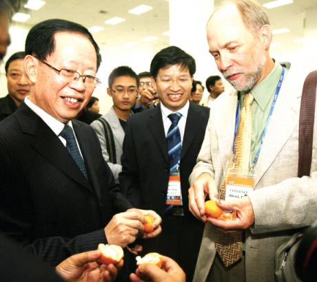 國際柑橘大會首次在漢召開,農(nóng)業(yè)部副部長現(xiàn)場推薦湖北柑橘,省農(nóng)業(yè)廳果品辦主任李傳友透露“不必驚慌,很多國家的不同地區(qū)都發(fā)生過蛆柑事件。”昨日下午,由國際柑橘學會主辦,中國柑橘學會和華中農(nóng)業(yè)大學承辦的第十一屆國際柑橘大會開幕,600余名來自世界各國的柑橘專家參加了會議。