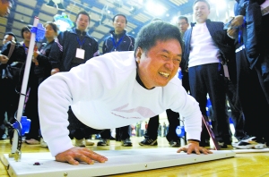 浙江舉行公務(wù)員體能比賽 測試俯臥撐坐位體前屈