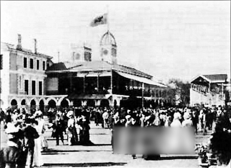 武漢曾是賽馬之都。圖為昔日漢口華商跑馬場的正廳。(資料圖片)