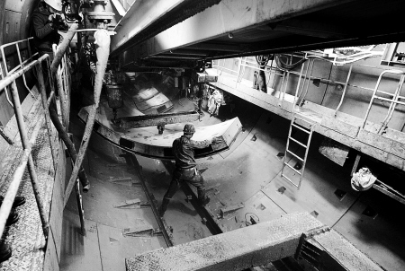 隨后,記者進(jìn)入F9地裂縫左線隧道。除隧道內(nèi)略微殘存一些燃燒過的煙味,起火點(diǎn)處的隧道墻壁上留有被燃燒源熏黑的印跡外,其他均恢復(fù)正常。沿隧道一直向北,就能看到盾構(gòu)機(jī)正在緊張施工。