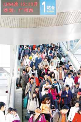 據(jù)向站長(zhǎng)介紹,春節(jié)過后,昆明發(fā)往廣州、廈門、上海、重慶等城市的列車就特別擁擠,其中尤以外出務(wù)工人員居多。去年11月份,從廣州、東皖回昆的返鄉(xiāng)農(nóng)民工客流量非常大,但兩個(gè)月過去了,依然還是有大批的人涌向省外務(wù)工。同時(shí),由于今年春節(jié)期間氣候好,昆明站列車到站的正點(diǎn)率比較高,完善的服務(wù)也保證了廣大乘客能夠及時(shí)出行。 (記者李嚴(yán)) (昆明日?qǐng)?bào))