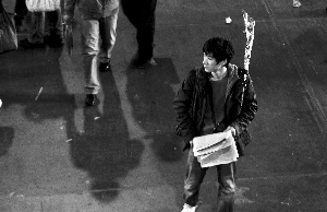 早晨8點,國展門外已排起長隊,隊伍一直延續到200米外的北三環輔路上。由于人多,國展在原有10個固定售票口之余,另開辟了5、6個臨時售票口。大門外不少人兜售鮮花,為今天招聘會增添了一些浪漫。