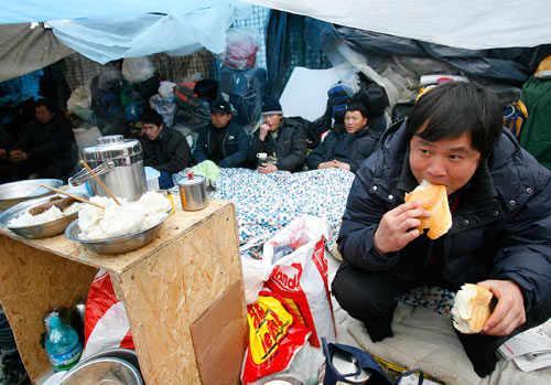 2月16日,滯留在布加勒斯特的中國勞工棲居在臨時帳篷里,處境堪憂。