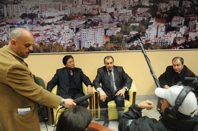 中新網2月23日電 據中國外交部網站消息,2月22日,中國與阿爾及利亞正式開通北京—阿爾及爾直飛航班。中國駐阿大使劉玉和、阿外交部亞大總司司長、交通部航空局局長等阿官員及部分駐阿中資機構代表等作為貴賓一道乘首航班機前往北京。行前劉大使和阿航總裁阿卜杜拉共同接受了新華社、阿新社、阿電臺等媒體采訪。