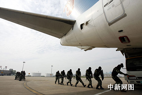 隨著一聲令下,早已埋伏在飛機(jī)前后艙門口的反恐官兵迅速打開艙門,突入機(jī)艙,迅速占領(lǐng)了艙內(nèi)各要害部位,沒等兩名“劫機(jī)分子”反應(yīng)過來,反恐戰(zhàn)士的槍口已經(jīng)對(duì)準(zhǔn)他們的腦袋,并迅速將他們有效控制。