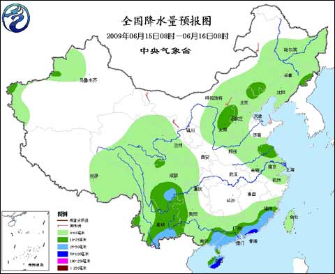 6月13日14時至14日14時,福建中南部、廣東、廣西東部和海南北部等地的部分地區降30~80毫米的大到暴雨,其中廣東陽江(116毫米)降大暴雨;新疆沿天山地區、黑龍江西南部、吉林及河北北部降小到中雨,其中新疆木壘(30毫米)和吉林雙遼(27毫米)降大雨。