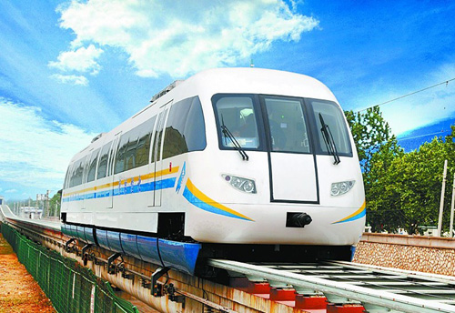 今年5月13日,國內(nèi)首列具有完全自主知識產(chǎn)權(quán)的實用型中低速磁懸浮列車在唐車公司完成組裝,順利下線,并隨即開始進行列車調(diào)試。該車在原有工程化樣車基礎(chǔ)上進行了大量實用化改進,整列車為3輛編組模式,由2輛結(jié)構(gòu)相同的端車和1輛中間車組成,運行時速為100至120公里,首尾車定員為每輛100人,中間車為120人,使用壽命在25年以上。該車采用鋁合金車體、寬幅車身,供電電壓由直流750伏提高到直流1500伏,噪音低、無輻射、運行安全可靠,爬坡能力達到70‰的水平,更加適合在城市復(fù)雜線路運行,并可大幅降低線路建設(shè)拆遷成本。