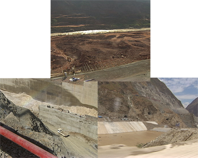 云南華電魯地拉公司安全技術部主任張湘濤:“對,這個就是兩個圍堰,你看到的上面的就是上游圍堰,我們現在站的是下游圍堰,作為電站大壩的施工,它的首先基本條件就是要把讓水從我們導流洞里走。”