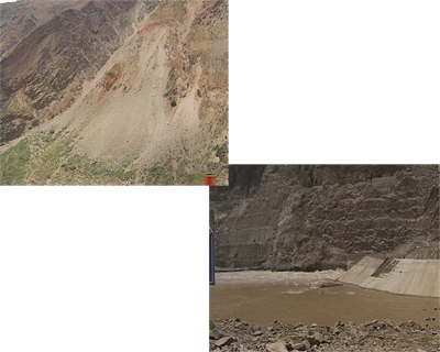龍開口水電站于2007年9月開工,不到兩年的時間大壩已經頗具規模。主壩開始澆灌水泥。金沙江從導流明渠穿過,原來的河道被截流用于建壩。