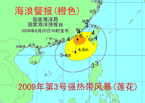 消息稱,受今年第3號強熱帶風暴“蓮花”的影響,預計20日夜間到21日白天,南海東北部、臺灣海峽南部將出現5到6米的巨浪到狂浪區;臺灣海峽北部將出現3到4米的大浪到巨浪區。廣東省東部、福建省南部沿海將出現3.5到4.5米的大浪到巨浪。
