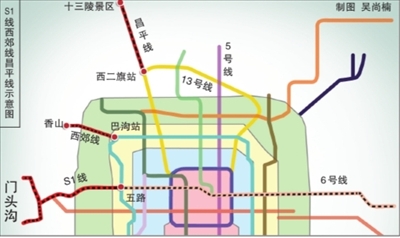 據了解,S1線東起西四環定慧橋北五路,西到門頭溝,進入門頭溝后會分叉為兩條線運行。