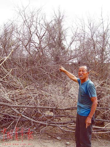 村子西頭的幾戶人家,至今土坯院墻外還有大堆沙子。沿著沙子,可以輕而易舉地走上院墻,當地人形容為“沙壓墻,羊上房”。