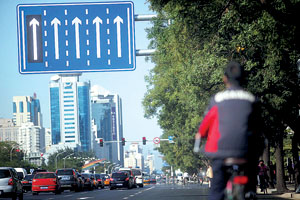 除指路標(biāo)志更新外,長安街上的導(dǎo)向標(biāo)志也將全面更新。因?yàn)殚L安街上主要路口都為禁左路口,所以這些導(dǎo)向標(biāo)志變化更大的就是禁左標(biāo)志的變化。