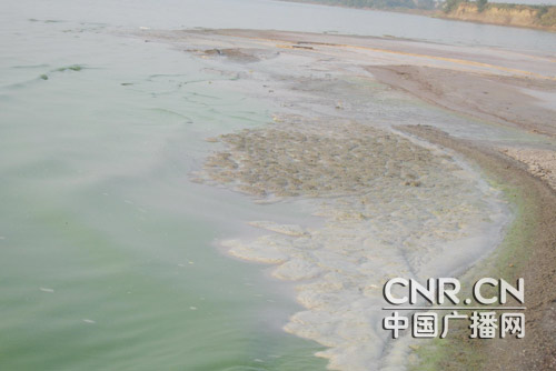 雖然,開源石料廠今天停產,排污不再進行,但是記者依然在巢湖邊的污水口看到以前排污留下的種種“罪狀“,該廠的排污口直徑約20厘米,以前洗砂后的廢水就順著巢湖廣闊的湖岸的接排入湖內,現在湖岸邊已經形成一片污水區,與湖中心清澈的水形成鮮明的對比,又稠又粘顏色暗黑發散著難聞的味道。記者順著湖邊的排污道走了一圈,身上馬上被一層灰籠罩,也讓人馬上想到平時這個廠開足馬力生產時候的烏煙瘴氣以及對環境造成的惡劣影響。