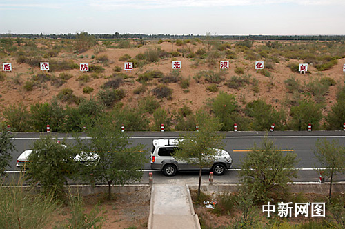八步沙林場,公路穿行。