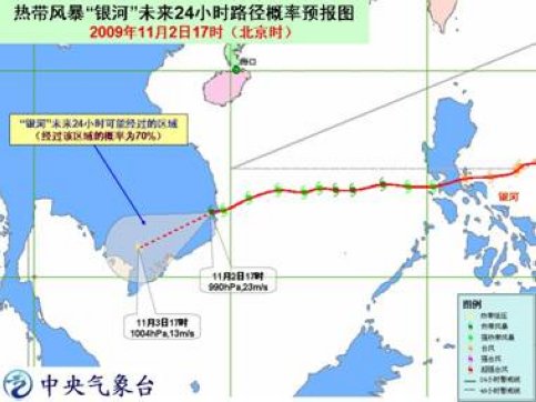 預計,“銀河”將以每小時20-25公里的速度向西偏南方向移動,強度繼續減弱。