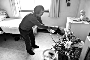 四季青敬老院一共住有480位老人,大多數是雙人間,有的住單間。在每位老人的房間里,都裝有一個圓形的按鈕,上邊標注著高中低三個檔位,老人可以擰動圓鈕,自行調節溫度。“老人的房間最高能調到25℃。”劉院長說。