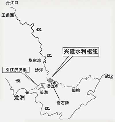 經(jīng)過(guò)多年?duì)幾h和論證,引江濟(jì)漢工程設(shè)計(jì)方案到2009年9月通過(guò)專家評(píng)審。根據(jù)設(shè)計(jì),從長(zhǎng)江荊江河段引水至漢江興隆河段,進(jìn)水口位于荊州市李埠鎮(zhèn),出水口位于潛江市高石碑鎮(zhèn),全長(zhǎng)約67公里。