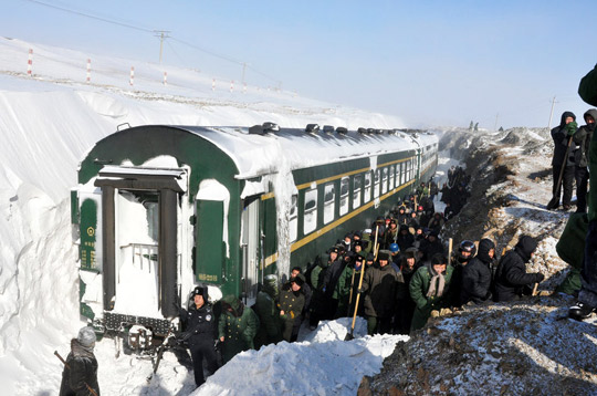 由于連日暴雪,由哈爾濱開往包頭的1814次客運列車3日晚18:48分被困于內(nèi)蒙古烏蘭察布商都縣。因為雪勢過大,前去救援的軌道車也一度被積雪所困。在3000多名救援人員的努力下,經(jīng)過30多個小時的緊急救援,被困在車上的1400名乘客全部安全獲救,列車也從積雪中成功撤出,該起事故沒有造成人員傷亡。