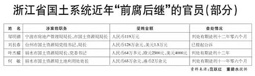 浙江省國土系統近年“前腐后繼”的官員(部分)