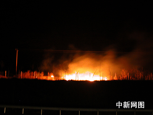 記者于下午5時30分接報后,立即向滿城縣官員進行了火情通報,并驅車沿京昆高速滿城收費站由北向南了解火情。只見京昆高速路西側連綿二、三十里的山頂已成了一條火帶。山上枯草、灌木等植被噼里啪啦的燃燒聲不絕于耳,火苗隨風力忽大忽小。行進至順平境內,記者未見到山上有明火。