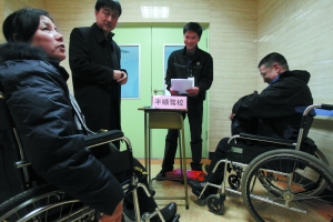 由于新規定放寬了對殘疾人學車的條件限制,昨日,200多名殘疾人來到中國康復研究中心北京博愛醫院門診樓進行體檢,門診樓里盡是歡聲笑語。