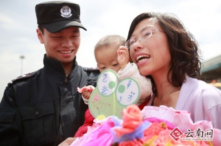 “歡迎回家。”這是援疆特警們踏上家鄉(xiāng)土地聽到的第一句問候,但在迎接戰(zhàn)友凱旋的民警心里,這句話已經(jīng)憋了很久。一聲問候、一束鮮花、一個(gè)大大的擁抱,不少特警被戰(zhàn)友拉到一邊合影。昆明市公安局特警支隊(duì)政治處主任楊春雷激動(dòng)地說:“踏上家鄉(xiāng)的土地,看到家鄉(xiāng)的親人、朋友心中格外高興。特警隊(duì)員們圓滿完成赴疆維穩(wěn)工作,無愧于家鄉(xiāng)父老鄉(xiāng)親!