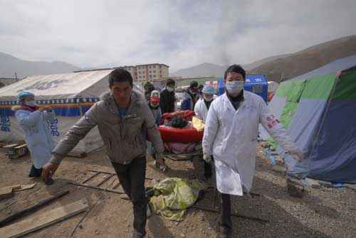 第一次遇到,在一個醫療帳篷前,他正和來自什邡的醫生一起抬著擔架向前飛奔,把重傷員轉移到救護車上;第二次遇到,在玉樹團州委設立的志愿者報名處的小桌子前,他正用沙啞的嗓音呼喊著幾名志愿者去山區抬傷員。