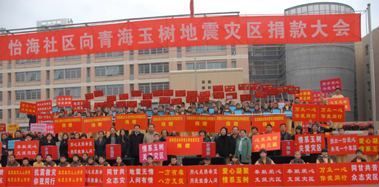 中新網北京4月20日電 (南若然)舉國齊哀悼國殤,滿腔愛心獻玉樹。20日上午,怡海社區舉行抗震救災捐贈大會,5000余名怡海社區居民、公司員工、師生參加此次捐贈,共募得捐款121萬余元。該款項將通過由民政部指定的接收玉樹捐款單位,捐往青海玉樹受災地區。