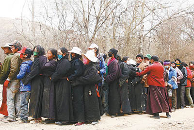 因為每天都在廢墟里翻撿,她的手磨破了許多處,直到4月19日這天,她還在呼哧呼哧地搬開木頭、泥塊和繪著彩色圖案的磚瓦,尋找遺落的經文。盡管找到的經文有些已經損壞了,但她還是很滿意。她用白色哈達把斷裂的夾板捆起來,準備送往國家撥專款修建的博物館里。