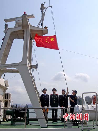中新網廣州4月21日電 (索有為 陶宇峰)21日,中國海關機構中唯一的島上沒有居民的海島海關下半旗為玉樹地震遇難同胞志哀,海關關員還在緝私艇上為遇難同胞集體默哀。