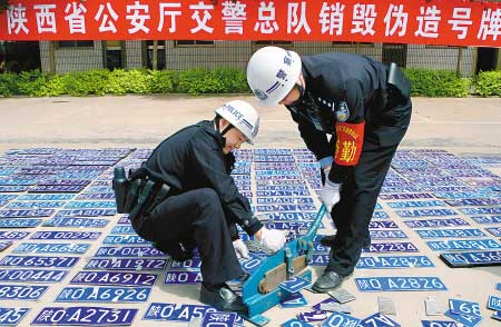 交警總隊昨集中銷毀123副“陜O”假牌照,同時作出新規——