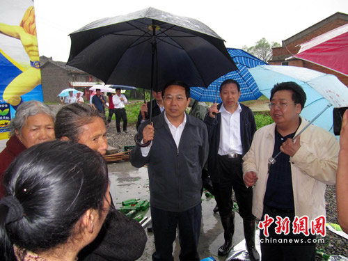說 明:重慶市常務副市長馬正其(灰衣)視察墊江災情。