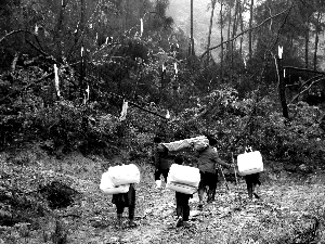 李莉、李潤波面無表情地看著眾人提著鞭炮、紙錢、香燭往廢墟前的院壩里送。