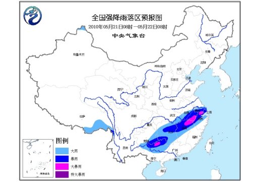 中新網(wǎng)5月21日電 中央氣象臺21日06時繼續(xù)發(fā)布暴雨藍色預警:預計,21日08時到22日08時,湖北東南部、安徽南部、江蘇南部、上海、浙江中北部、江西中北部、湖南、貴州東部和南部、廣西中北部以及云南西北部等地有大到暴雨,局部地區(qū)有大暴雨。