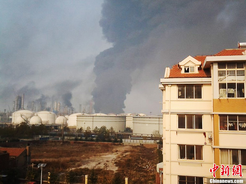 青島中石化輸油管線破裂起火 濃煙滾滾遮天蔽日