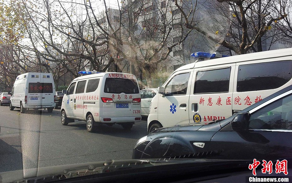 青島輸油管線破裂致多人死傷 救護車趕赴現場