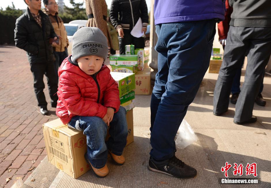 青島爆燃事故中心區居民領取救援物資