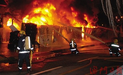 事發(fā)后,消防員接報趕至開動多支喉筆,從四面八方向火場噴灑化學(xué)泡沫及射水灌救,花一個半小時才能將大火完全撲熄,無人受傷。現(xiàn)場為華南工業(yè)大廈旁的露天廢舊輪胎回收場,該回收場早前搬遷至氹仔孫逸仙博士大馬路一地盤,但舊場目前仍存放大批輪胎。