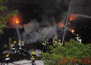 現(xiàn)場消息指,9日清晨近6時,有人發(fā)現(xiàn)舊輪胎回收場失火時,火勢已十分猛烈。大批救援人員接報趕抵現(xiàn)場,消防員發(fā)現(xiàn)火場面積有20米乘30米,足有一個籃球場般大,火舌不斷從場內(nèi)噴出對面處的馬路。