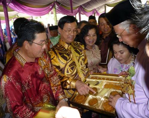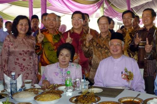 中新網9月19日電 據馬來西亞《星洲日報》報道,馬來西亞首相納吉18日回到選區北根舉辦開齋節門戶開放活動,華總會長方天興率領彭亨華人社團聯合會及彭亨中華工商會眾領袖一起出席,并贈送月餅予首相,象征月圓、人圓、全民團結!